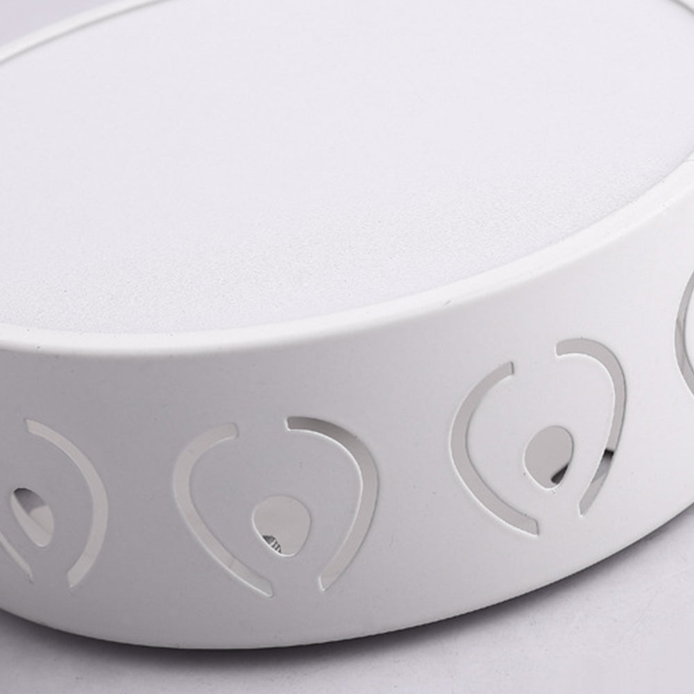 This compact flush-mounted ceiling light combines practical illumination with a decorative twist. Designed with perforated sides, it projects radiating star-burst light patterns across the ceiling while providing clear downward lighting. Its low-profile design makes it an excellent choice for hallways, corridors, and rooms with lower ceilings.